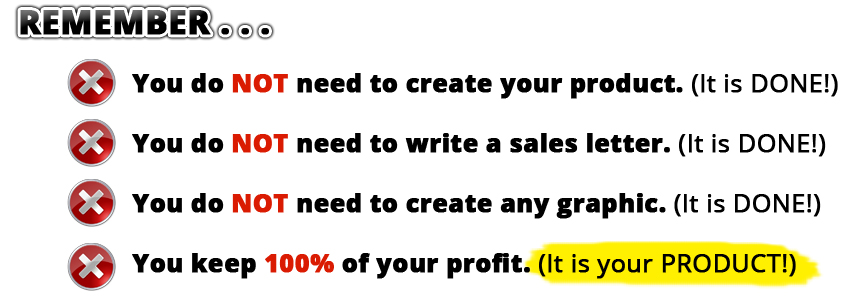 - You can keep 100% profit on each product you sell. -- You do NOT need to share any revenue you make from each product that you sell. It is YOURS.
