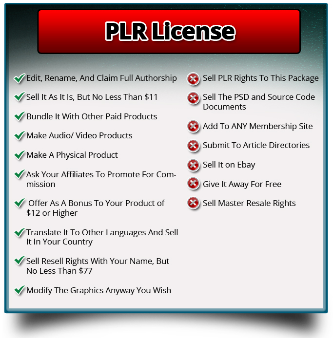- You can EDIT, ADD, or SUBSTRACT the content on the product.. -- It is completely your choice. You have the PLR rights to the product. It means that you can additional contents to the course to make it more powerful for your audience. (HINT: The truth is... You do not need to add more contents as we have created it in a step-by-step format.)